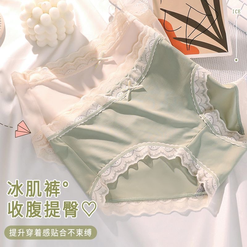 【买5送5,到手10条】新款无痕透气日系中腰石墨烯内裆蕾丝边内裤
