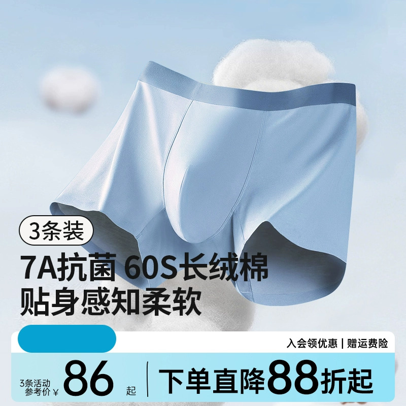 舒小朵男士内裤男生透气薄款抗菌裆男式四角裤长绒棉平角裤衩舒朵