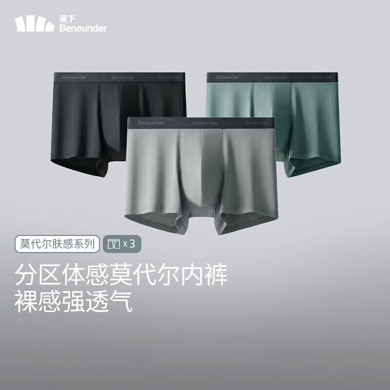 蕉下(beneunder)莫代尔男士内裤无痕底裆抗菌平角裤短裤三条装SF046 新款-月凝灰+漫暮黑+灰榄绿 3条 2XL