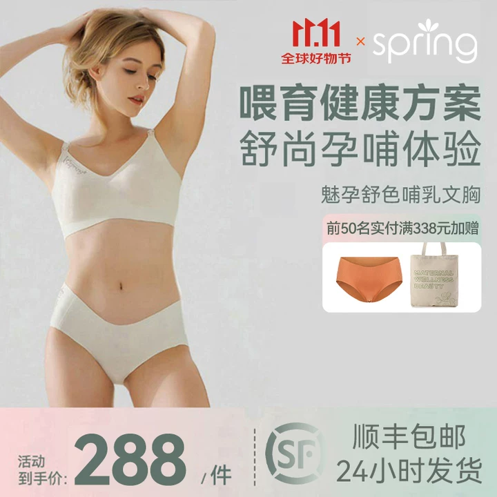 Spring Maternity喜临哺乳文胸孕妇哺乳内衣产后喂奶防下垂夏季时尚聚拢不勒胸 柔肤白哺乳文胸(不含内裤) S-M-L
