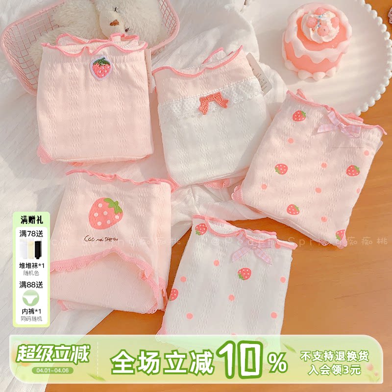 草莓啵啵~可爱粉色纯棉内裤女加长裆学生甜美少女三角裤A类抗菌裆