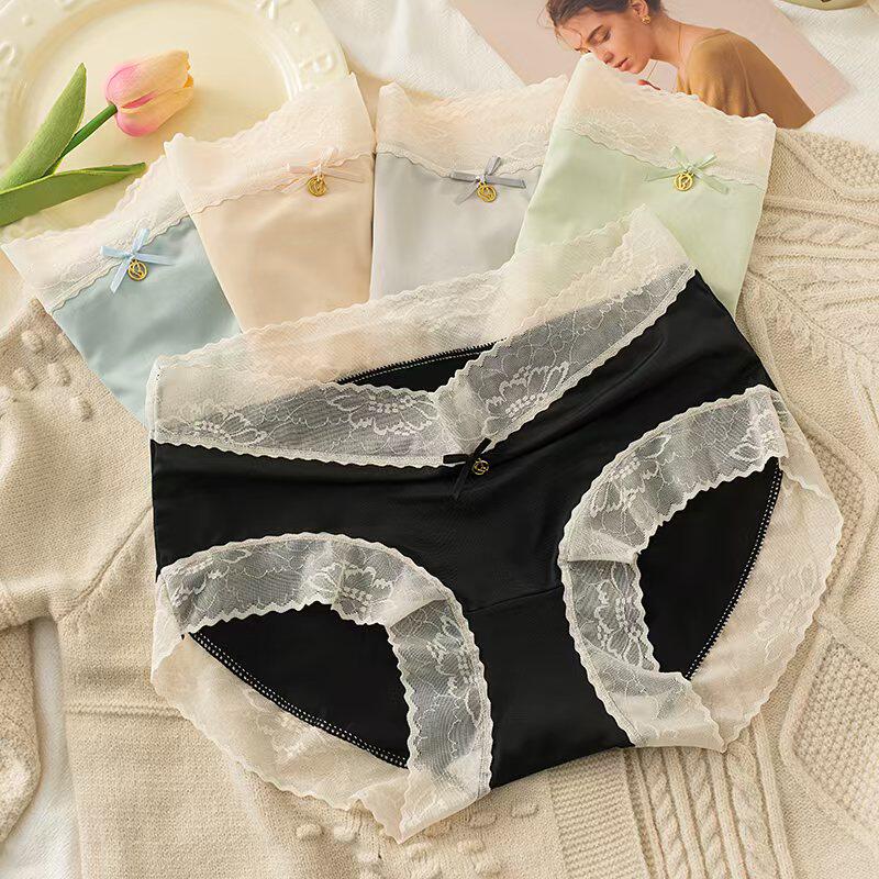 莫妮朵法式蕾丝边拼接纯棉内裤10A抑菌加长裆中腰少女大码三角裤