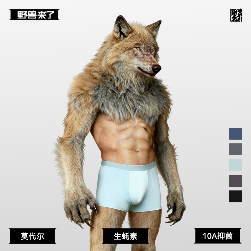 野兽来了内裤男【80s莫代尔】10A抑菌生蚝养护导湿排汗平角内裤