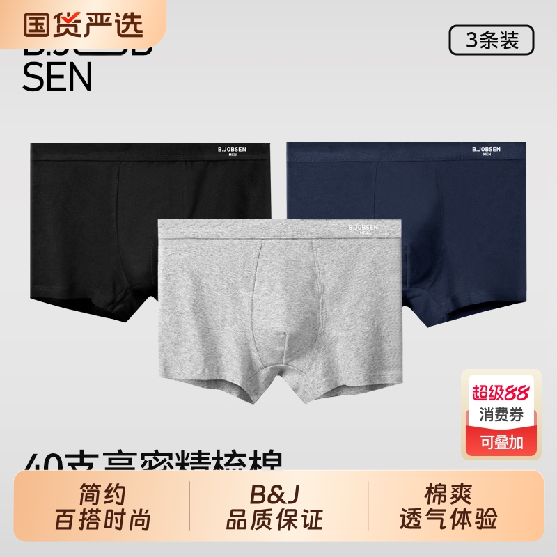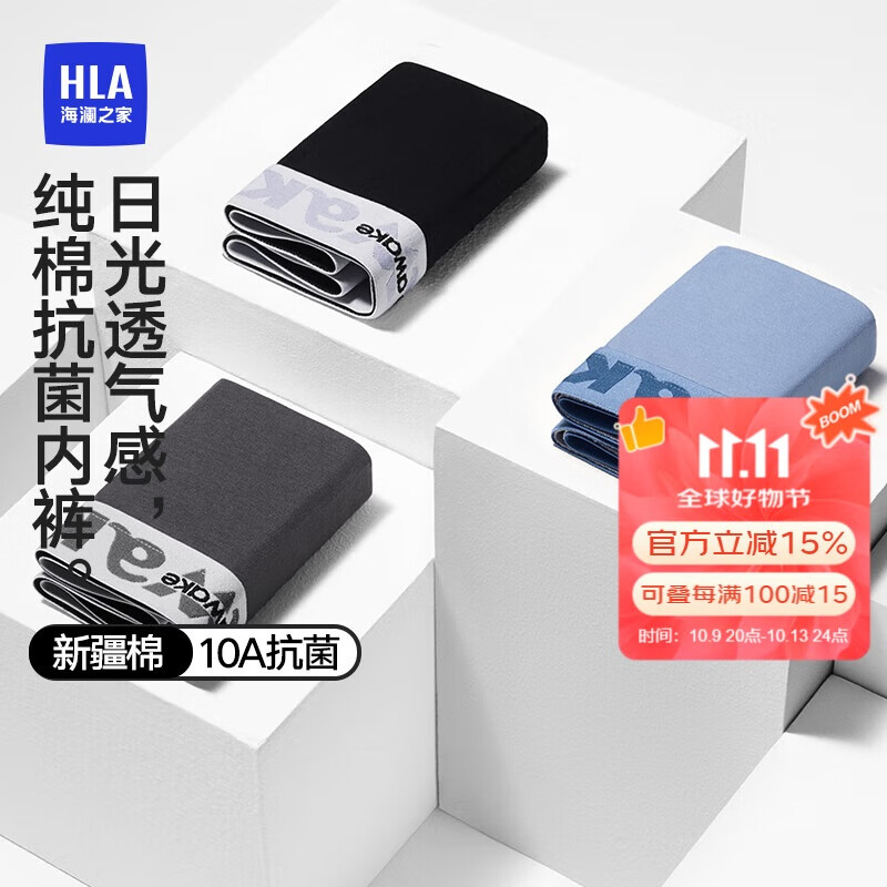海澜之家【轻奢度假】内裤男士新品60支纯棉10A抗菌消臭平角四角短裤衩3条