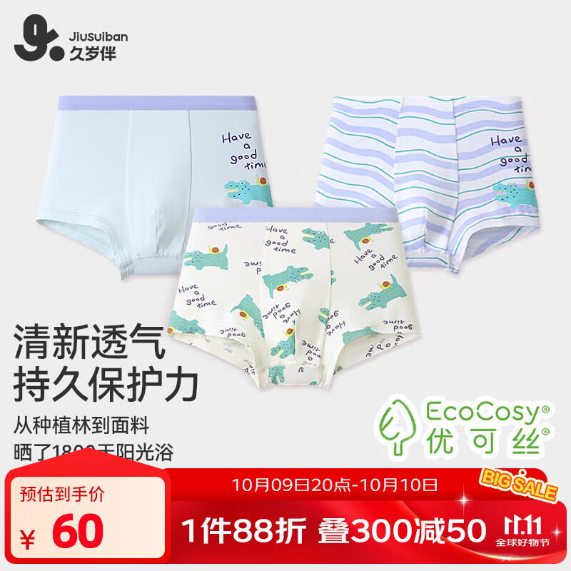 久岁伴儿童内裤男童平角裤中小童小男孩宝宝优可丝抑菌薄款透气四角短裤 3条 150 /身高140-152体重75-90斤