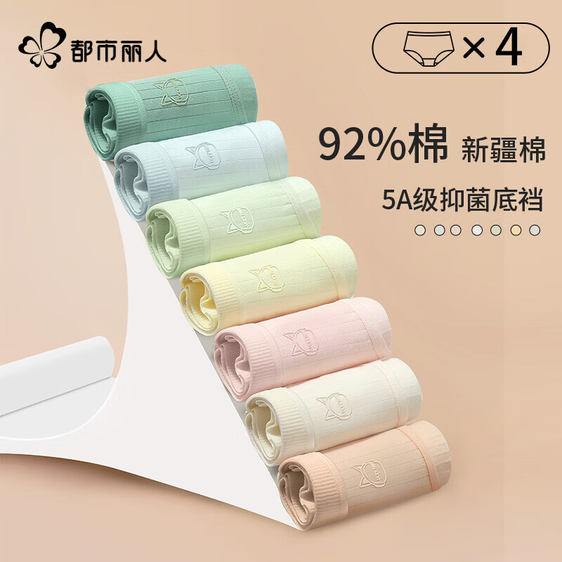 都市丽人日系内裤女新款纯棉简约女士内裤中腰包臀透气7A抗菌纯棉底裆短裤 B组:白色+绿色+粉色+紫色 4条 L 建议:100-120斤