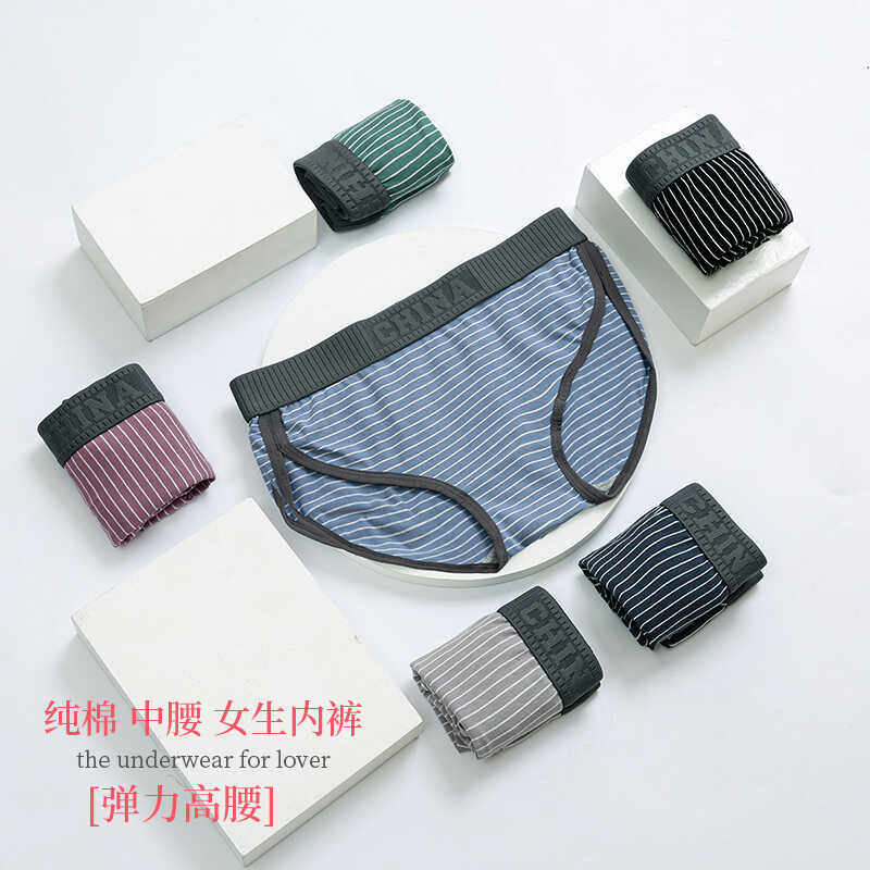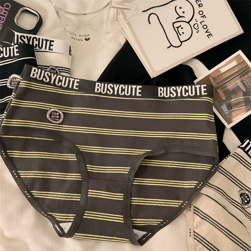运动风字母条纹无痕内裤女生纯棉全棉裆7A抑菌2026新款夏季三角裤