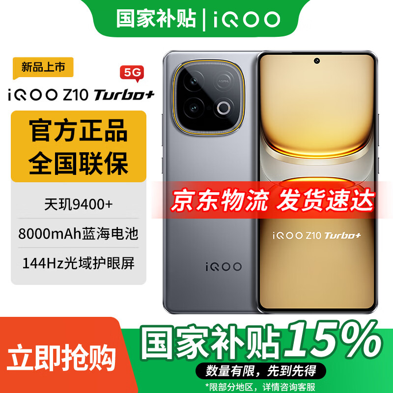 vivo iQOO Z10Turbo+ 天玑9400+和8000mAh超薄电池 自研电竞芯片Q2 144Hz护眼屏 新品5G学生游戏手机 极地灰 12GB+256GB 国补专享版