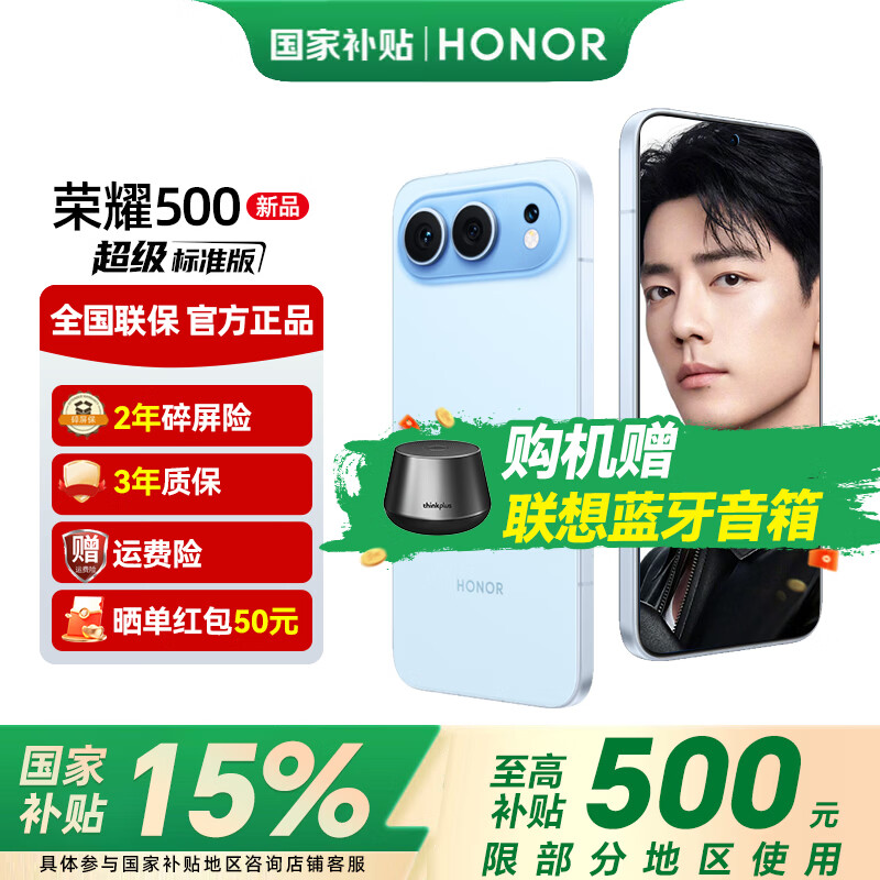 荣耀500 新品5G手机 超级标准版 【肖战同款】2亿人像全能实况 海蓝宝 12GB+256GB 官方标配