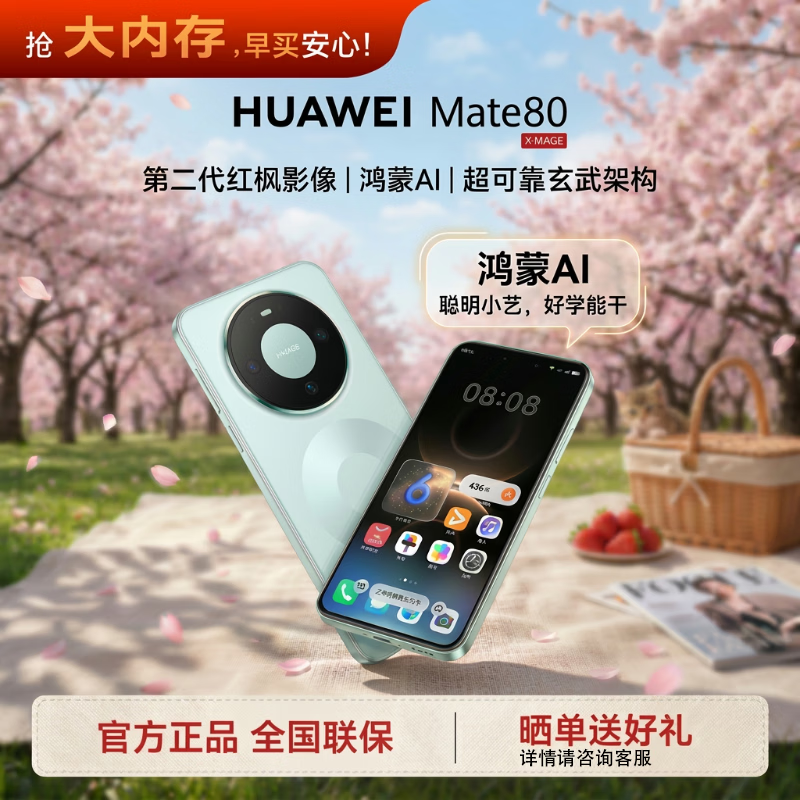 【自营】新品 华为 HUAWEI Mate 80 Pro 第二代红枫影像麒麟鸿蒙AI户外探索直屏鸿蒙智能手机 官方正品旗舰店