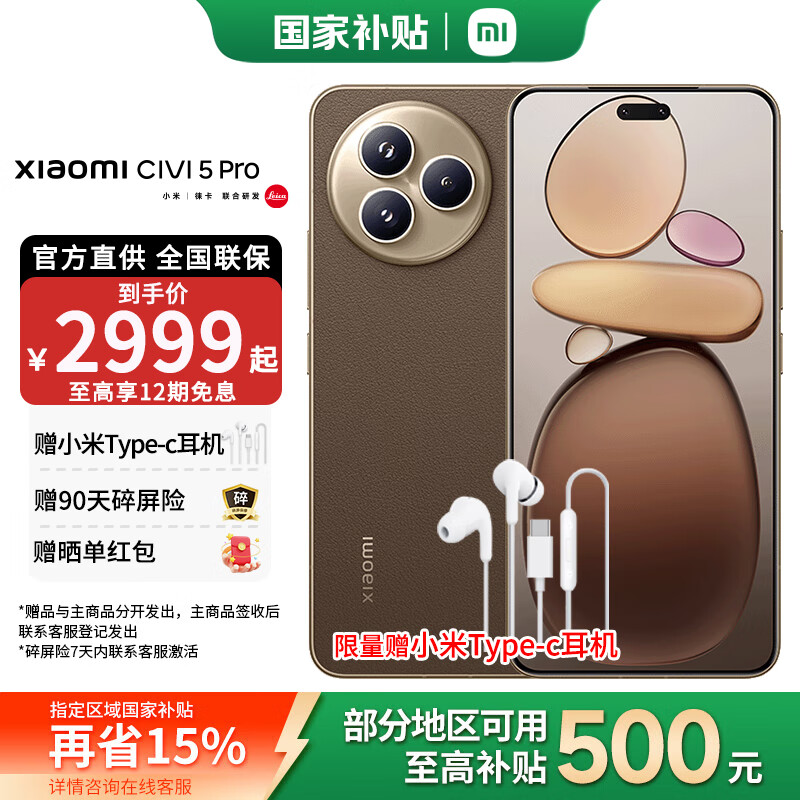 小米Civi5 Pro 第四代骁龙8s 国家补贴 小米手机 徕卡光学 小米civi5pro新品5G 学生电竞游戏手机 冰美式 12GB+256GB 官方|标配