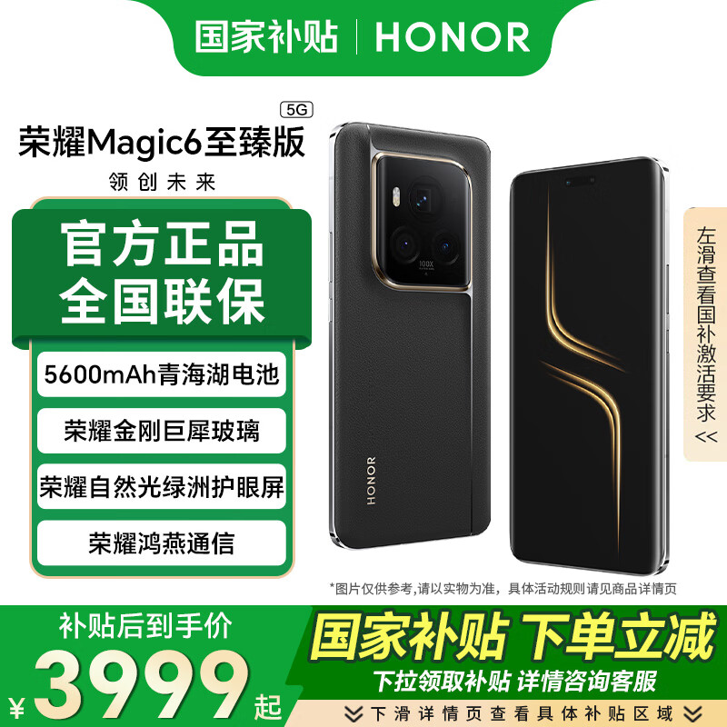 荣耀 Magic6 至臻版 新品5G手机 墨岩黑 16GB+512GB 官方标配
