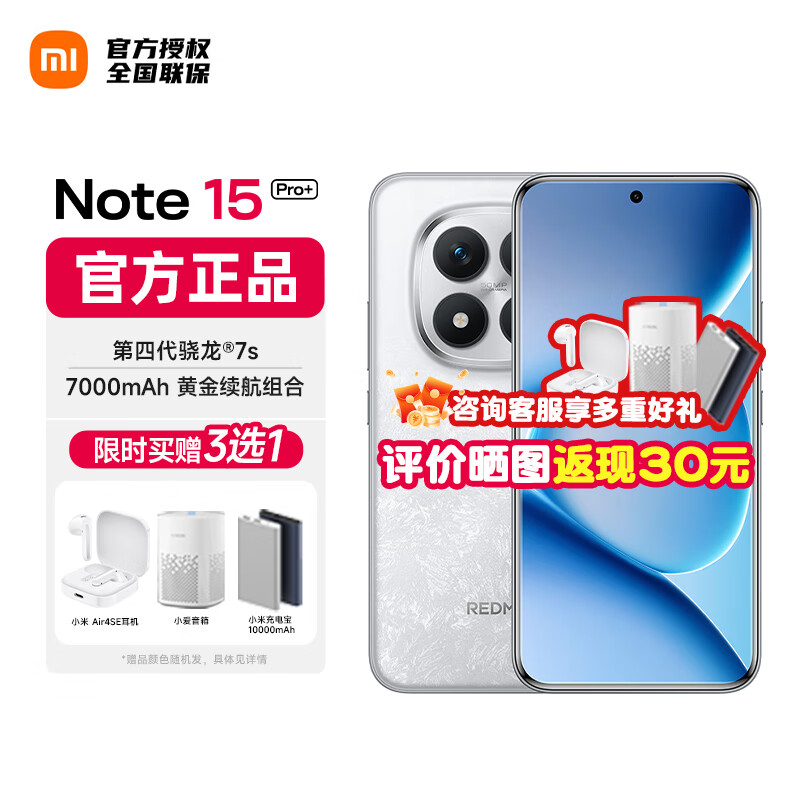 小米REDMI Note15 Pro+【国补】第四代骁龙7s 龙晶玻璃十倍抗摔 IP68防水 新品5G手机 雪松白 12G+256G