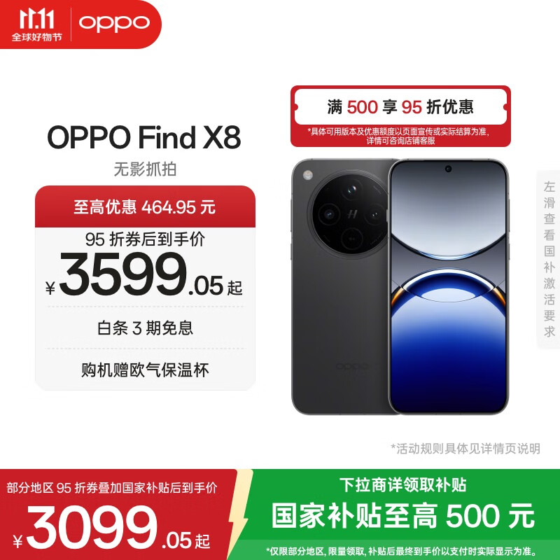 OPPO Find X8 5G 旗舰手机 无影抓拍 超轻薄直屏 潮汐引擎 天玑9400 AI 一键问屏专业哈苏人像 星野黑 12GB+256GB