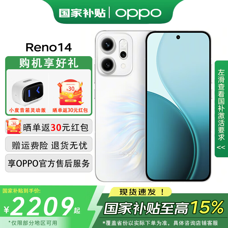 OPPO【国家补贴15%】 Reno14 手机超美小直屏 opporeno14 高清长焦实况照片 人鱼姬 12GB+256GB 官方标配