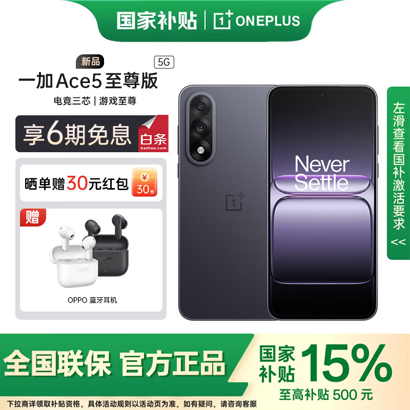 一加ace5至尊版手机新品游戏性能手机 天玑 9400+ 正品AI智能5g手机【用分期无返现无赠品】 燃力钛 12GB+256GB