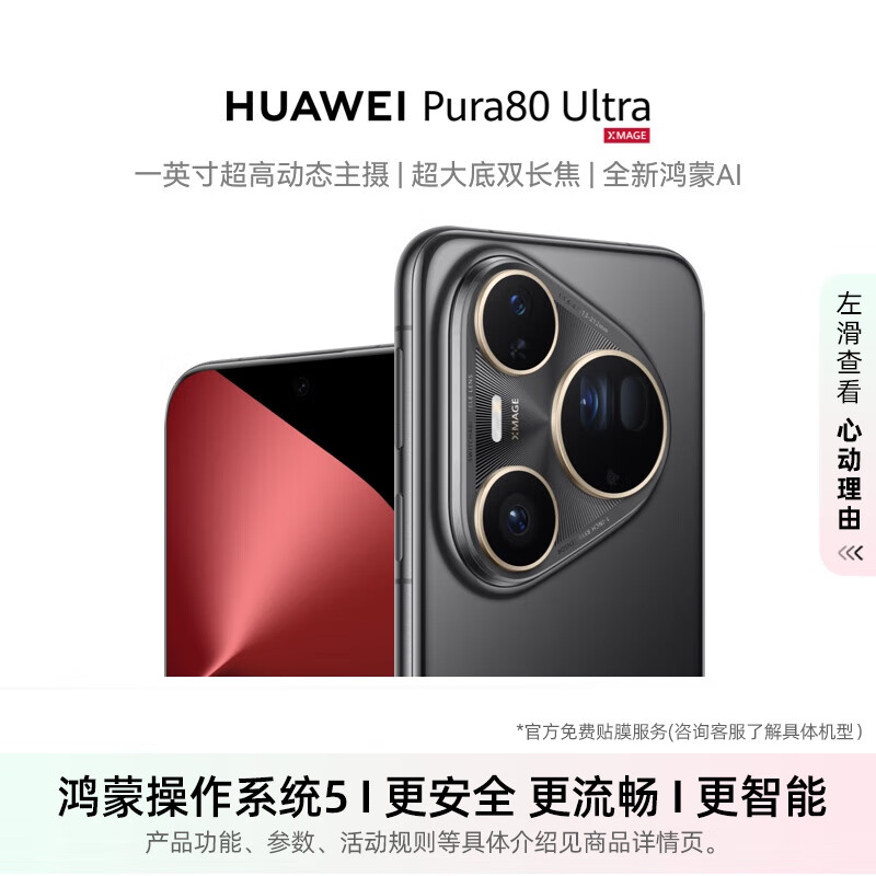 华为(HUAWEI) Pura 80 Ultra 16GB+512GB 鎏光黑 一英寸超高动态主摄 超大底双长焦 华为鸿蒙智能手机