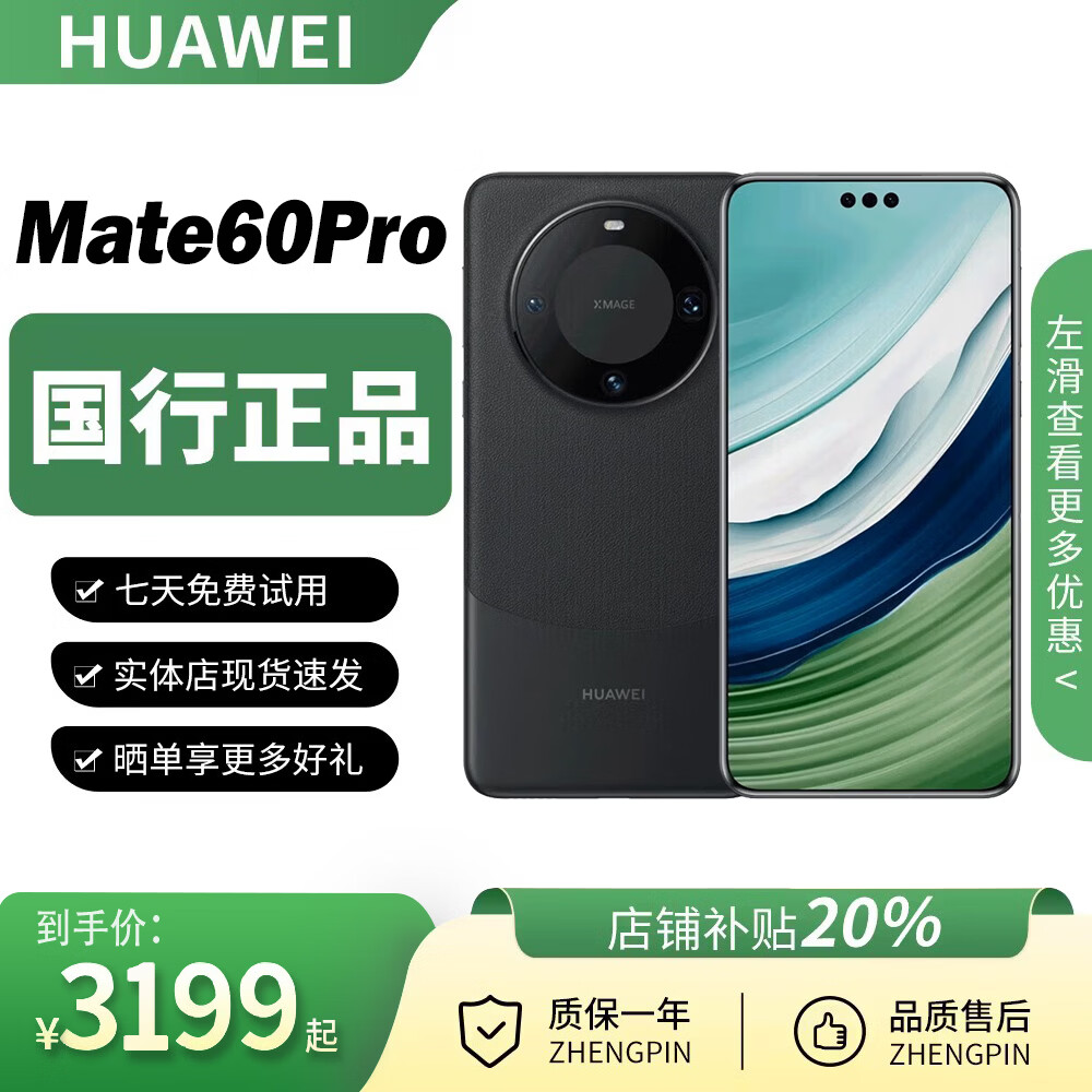 华为(HUAWEI)Mate 60 pro麒麟 9000S 7nm芯片正品国行鸿蒙AI 超可靠玄武架构 鸿蒙系统华为手机双向卫星通话 雅丹黑【mate60 Pro】 12GB+512GB 京东快递|支持7天试用