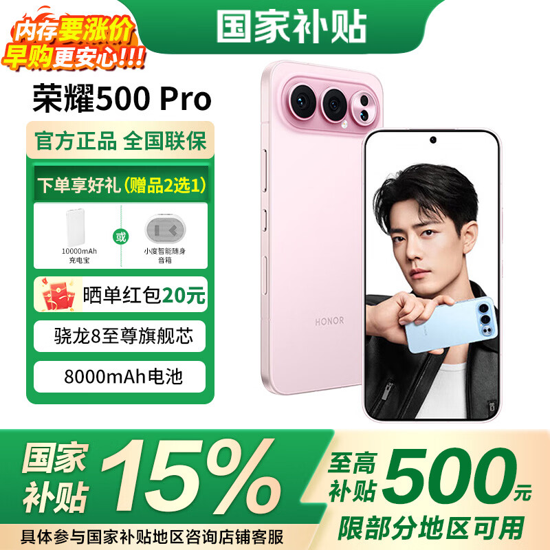 荣耀500 Pro 超级Pro版 肖战同款 国家补贴 骁龙8至尊旗舰芯 青海湖电池 5G AI 学生 新款拍照手机 星光粉 12GB+256GB 官方标配