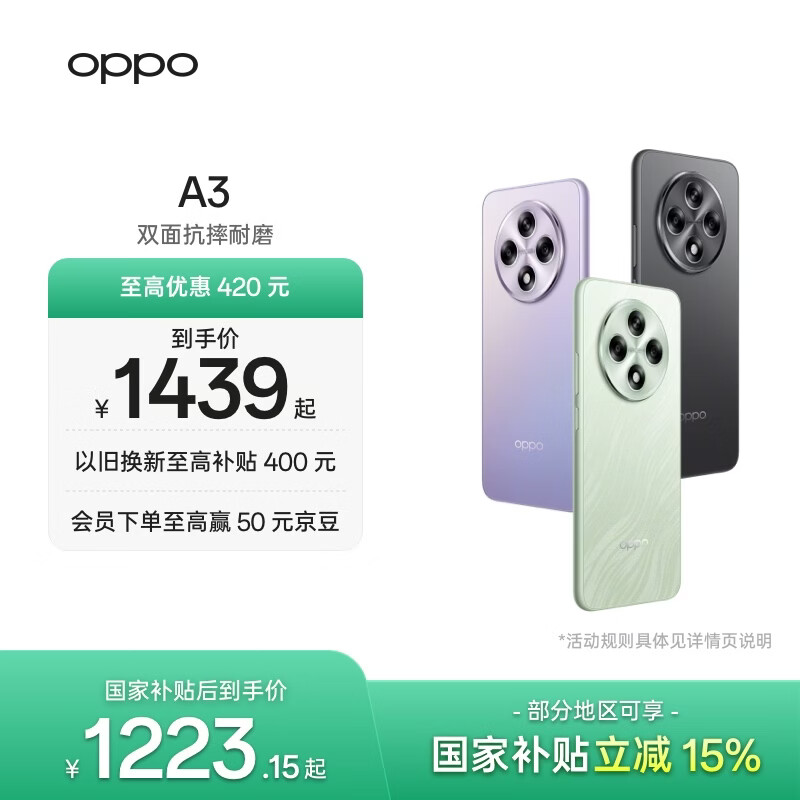 OPPO A3 5G 耐用战神直屏版 双面抗摔耐磨 满级生活防水 OLED超亮阳光屏 AI手机 国家补贴 山涧绿 12GB+512GB