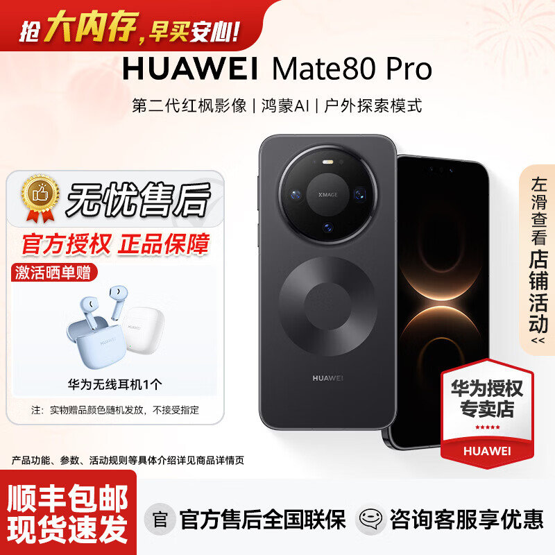 华为(HUAWEI)Mate 80 Pro 新品智能手机 第二代红枫影像鸿蒙AI户外探索模式直屏手机【官方正品保证】 曜石黑 16GB+512GB 官方标配