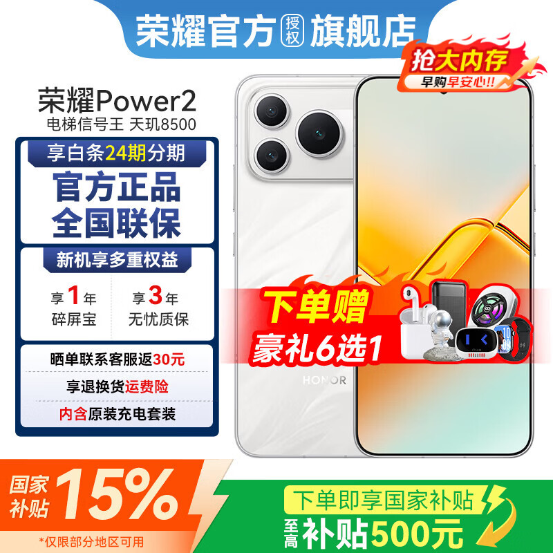 荣耀Power2 【国家补贴15%】 新品5G手机 10080mAh青海湖电池 天玑8500 Elite 手机荣耀power2 雪原白 12GB+256GB 官方标配【国补15%+碎屏宝】