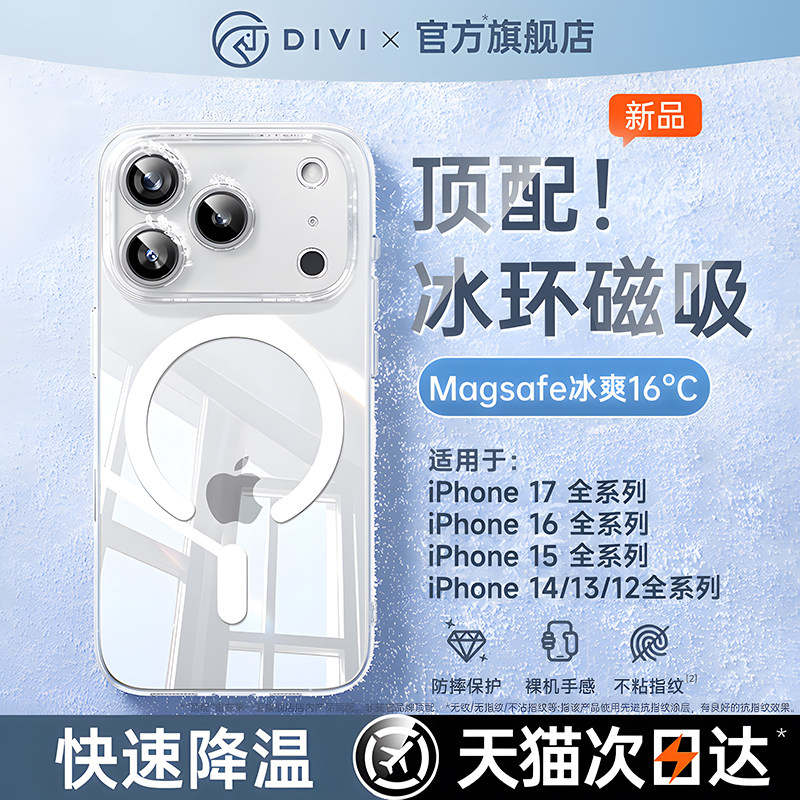 第一卫新款磁吸适用苹果17promax手机壳iphone17透明16pro保护套15超薄散热14防摔硬壳13Magsafe女12男全包AI
