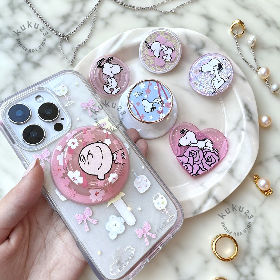 史努比幸福花丛泡泡手机磁吸支架气囊爱心玫瑰伸缩樱花粘贴可旋转