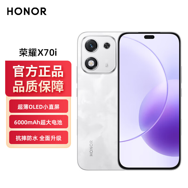 荣耀X70i 一亿像素 大屏AI OLED护眼屏 超轻薄 新品5G手机 月影白 8GB+256GB