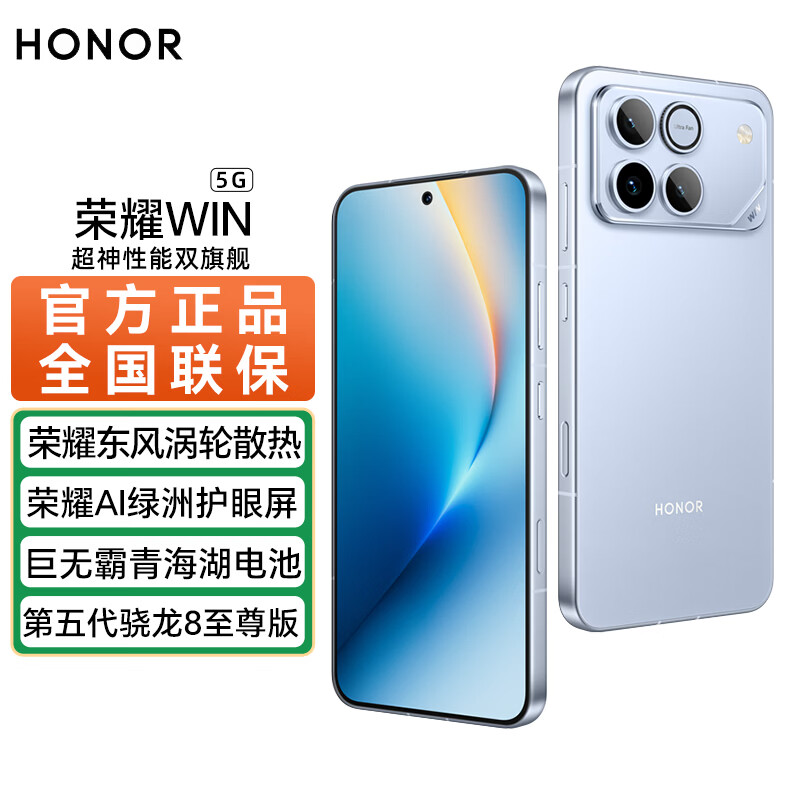 荣耀WIN 新品5G手机 第五代骁龙8至尊旗舰芯 10000mAh 青海湖电池 张予曦同款 不怕蓝 12GB+512GB 官方标配