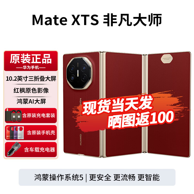 华为MateXTS非凡大师 新品三折叠屏手机 鸿蒙大屏AI 三叠式鸿蒙智能手机2025年上市 瑞红 16GB+256GB 官方标配