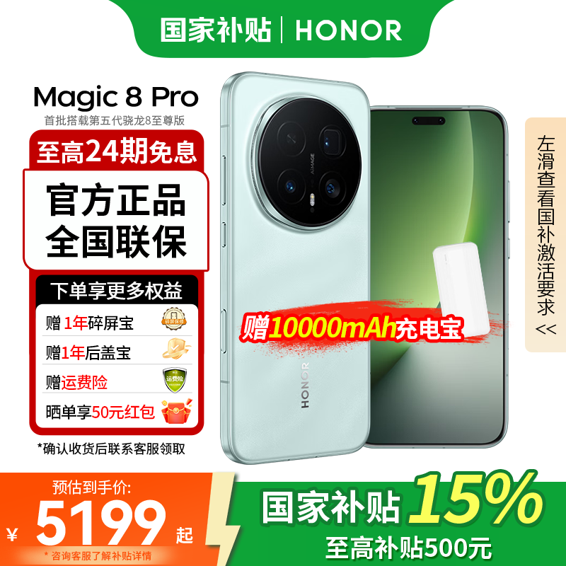 荣耀Magic8 Pro 第五代骁龙8至尊版 新品5G手机 谢霆锋同款 天青色【谢霆锋同款色】 16GB+512GB 官方标配