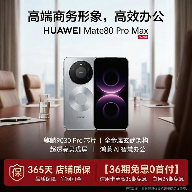 华为(HUAWEI)【36期免息0首付】华为 Mate 80 Pro Max 麒麟9030 Pro 金属玄武架构透亮灵珑屏华为直屏鸿蒙手机 极地银 16GB+512GB 白条24期免息