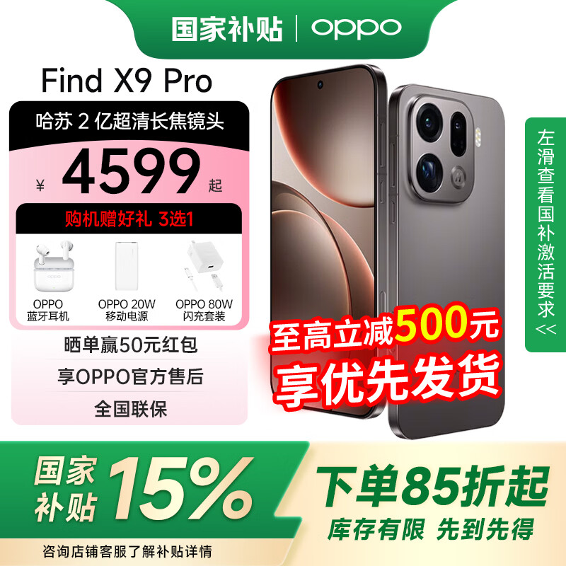 OPPO Find X9 Pro【多重好礼】 哈苏2亿长焦镜头 7500mAh 5G旗舰手机【孙颖莎同款】 绒砂钛 16GB+512GB 官方标配+3期免息+好礼三选二