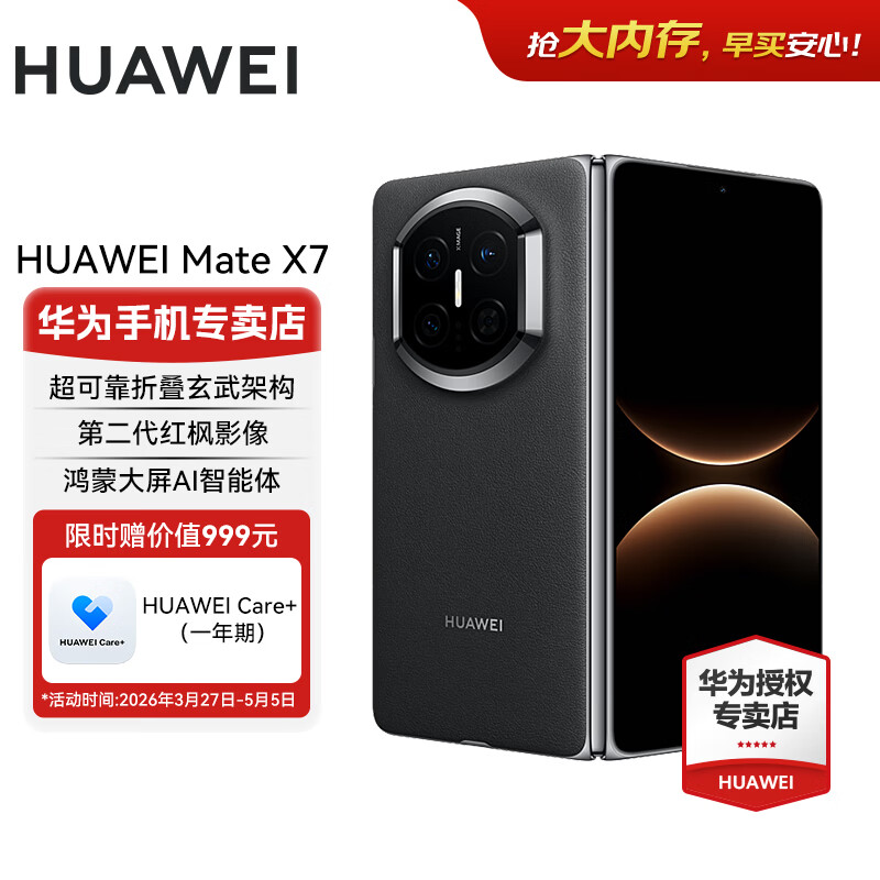 华为HUAWEI Mate X7 超可靠折叠玄武架构 第二代红枫影像华为折叠屏鸿蒙手机 曜石黑 16GB+1TB【典藏版】 官方标配