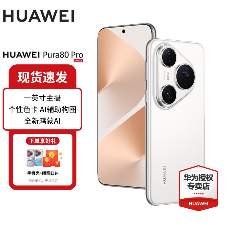 华为(HUAWEI)Pura 80 Pro 鸿蒙智能华为手机一英寸主摄 个性色卡 AI辅助构图 p80pro 釉白 12GB+512GB 官方标配