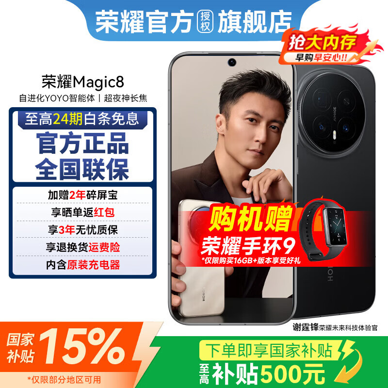 荣耀Magic8 新品5G手机 第五代骁龙8至尊版 手机荣耀 谢霆锋同款 绒黑色 12GB+256GB 官方标配【国补15%】