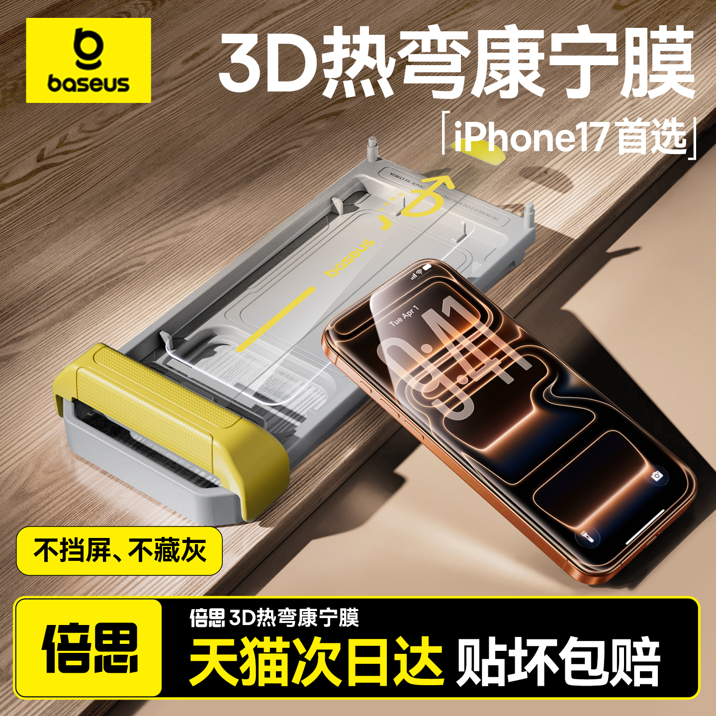 倍思3D热弯康宁膜AR抗反射适用苹果iPhone17ProMax钢化膜17手机贴膜无尘仓16pro全屏覆盖保护ip15新款防爆摔