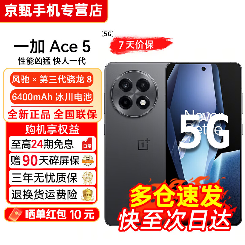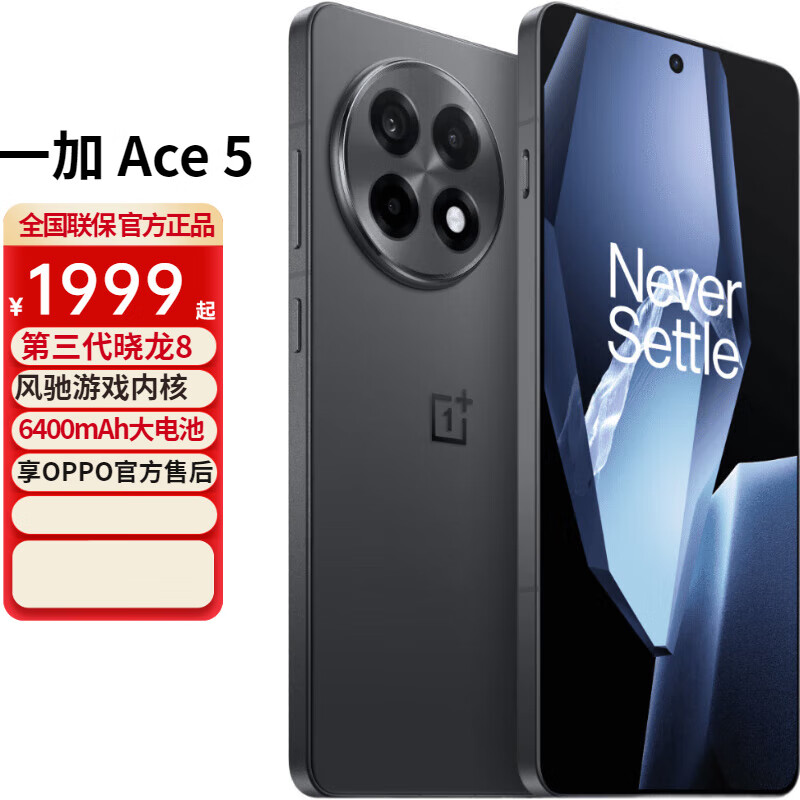 OPPO一加Ace5 pro 选购 骁龙8至尊版 风驰游戏内核 天宫散热 6400mAh冰川电池 oppo游戏AI智能5G手机 全速黑 【12GB+256GB】 官方标配【180天只换不修+三年质保+碎屏险】