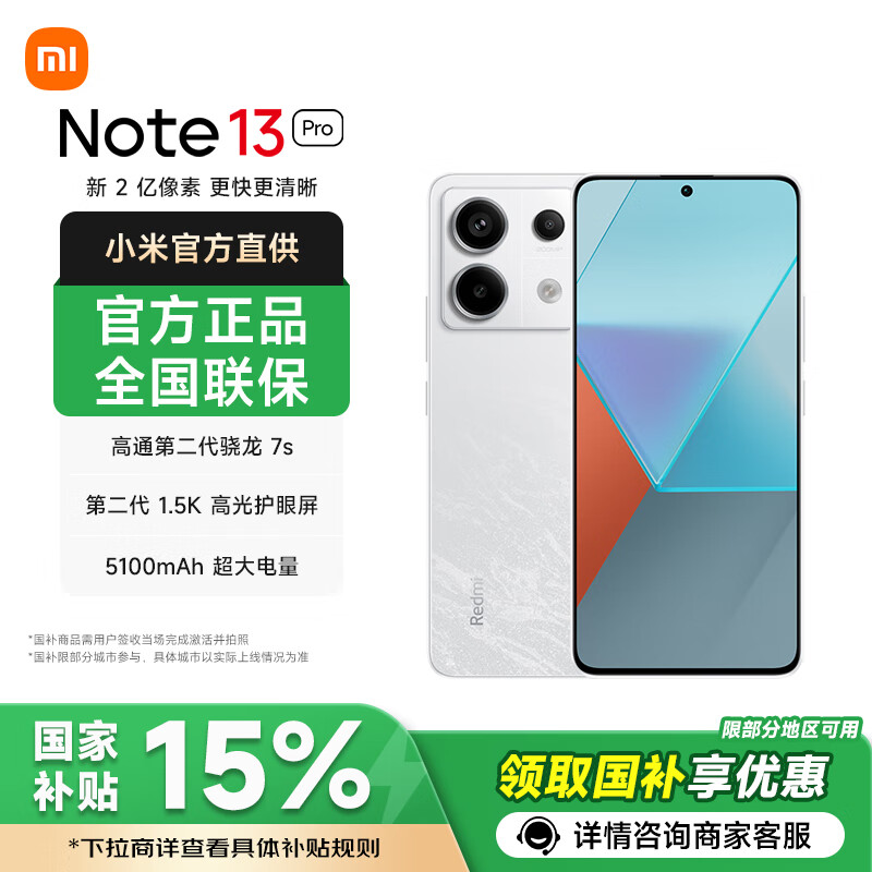 小米Redmi 红米Note13 Pro【国家补贴】新品5G手机 星沙白 8GB+256GB