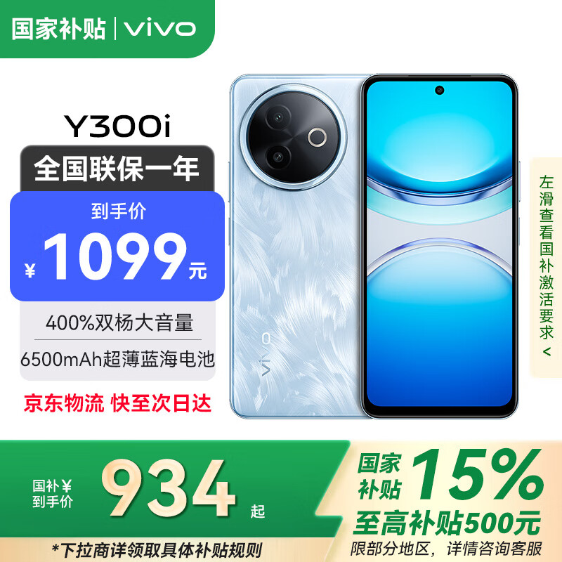 vivoY300i【国家补贴15%】新品手机 全面抗摔金刚盾玻璃 6500mAh 400%双扬大音量 多场景NFC 雾凇蓝 12GB+256GB
