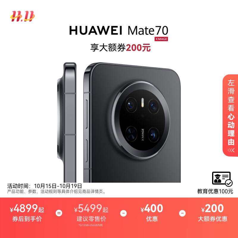 HUAWEI Mate 70 旗舰手机 鸿蒙AI 红枫原色影像 超可靠玄武架构 华为鸿蒙智能手机 曜石黑 12GB+512GB
