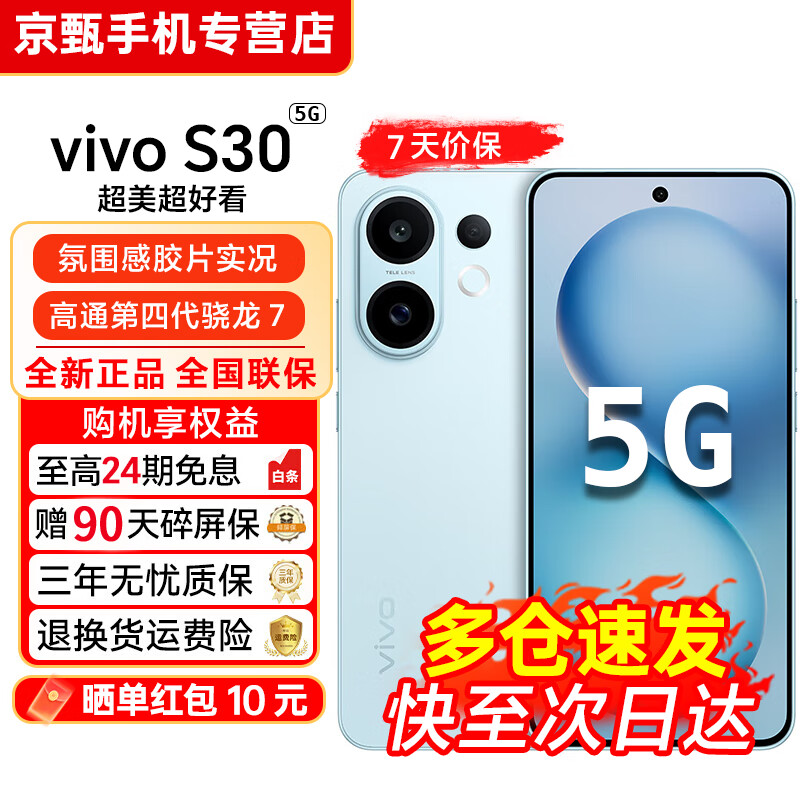 vivo S30 Pro mini/S30【24期免息】 多彩小直屏 蓝晶×天玑9300+超级潜望长焦 6500mAh学生AI 5G手机 薄荷青 12GB+256GB【S30】 官方标配【赠2年店铺延保+90天碎屏保】