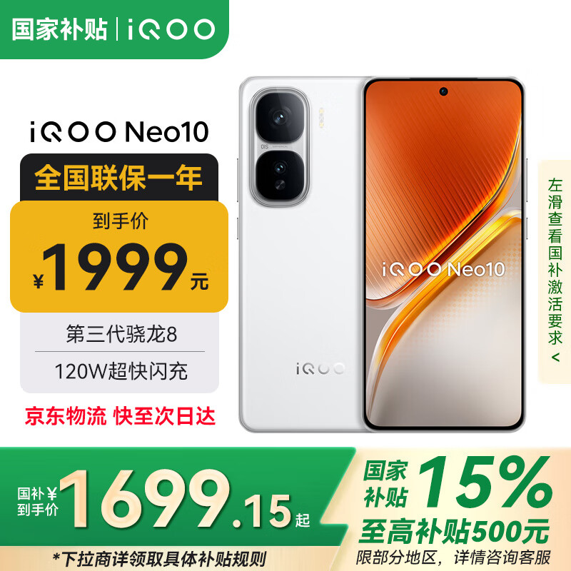 vivo iQOO Neo10 【国家补贴15%】新品5G手机 6100mAh电池 第三代骁龙8 自研电竞芯片Q2 iqooneo10 驰光白 12GB+256GB