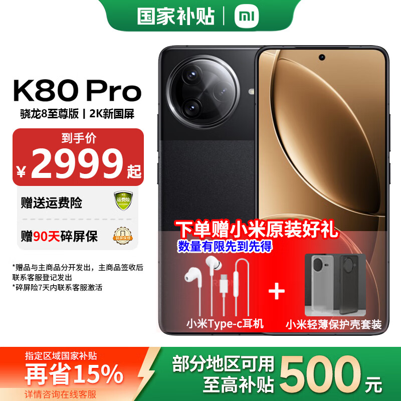 小米 红米K80pro 国家补贴 新品5G 小米 红米手机 REDMI K80pro 玄夜黑 16GB+512GB 官方标配