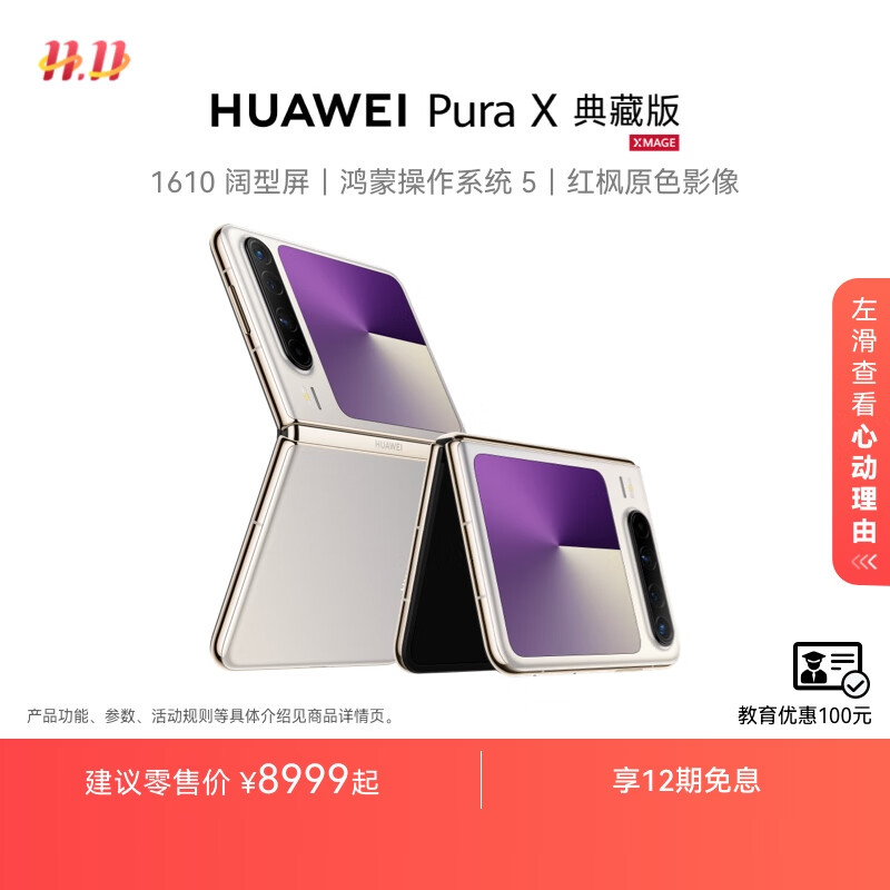 HUAWEI Pura X 1610阔型屏 鸿蒙操作系统 5 更安全 更流畅 更智能 折叠屏手机 华为鸿蒙智能手机 月影灰 典藏版 16GB+512GB