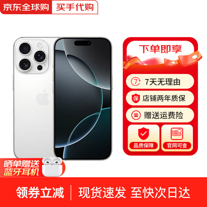 Apple【限时补贴】Apple iphone16promax手机 16pro系列全网通5G手机 苹果16promax白色钛金属 256G【配件礼包+店保2年】