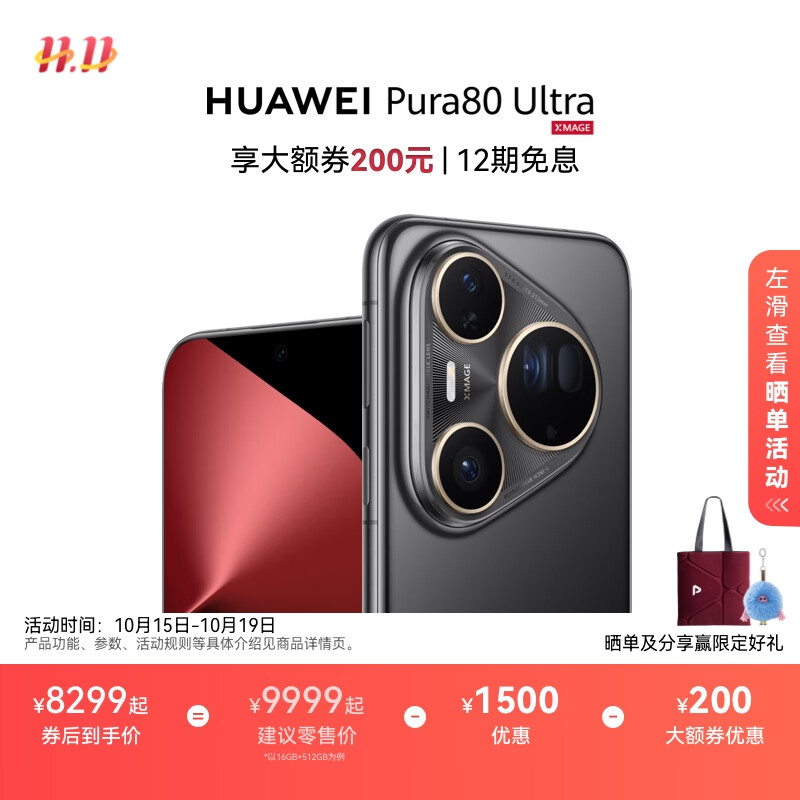 HUAWEI Pura 80 Ultra 一英寸超高动态主摄 超大底双长焦 华为鸿蒙智能手机 鎏光黑 16GB+512GB