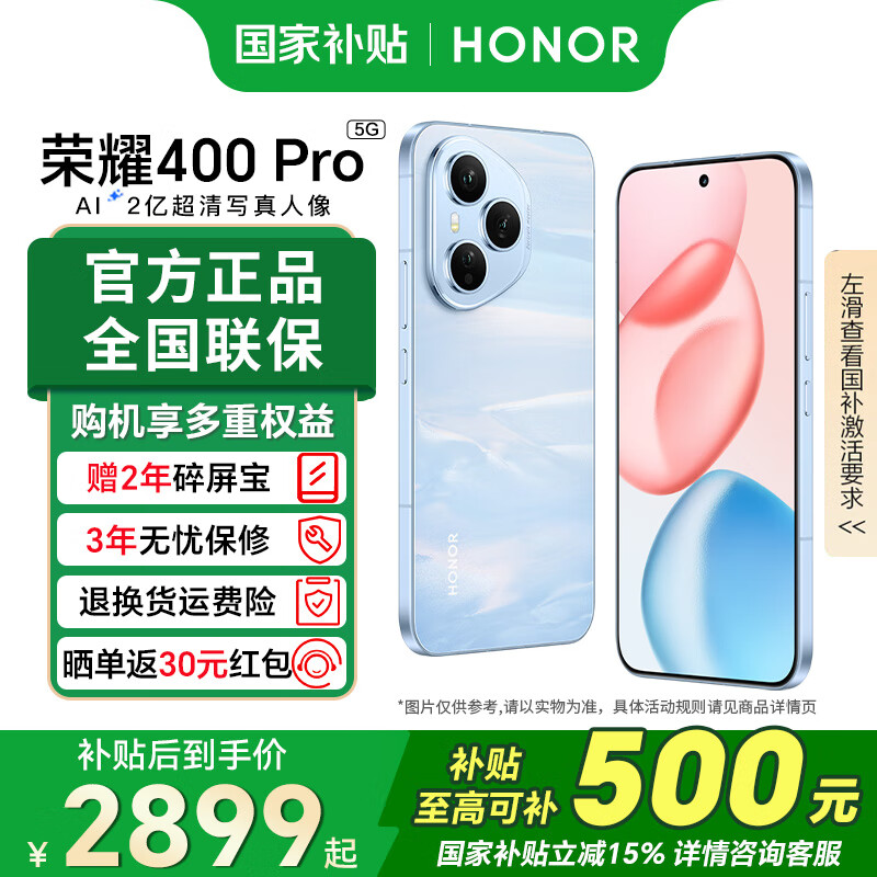 荣耀400Pro 【国家补贴15%】新品5G手机 2亿超清写真人像 7200mAh青海湖大电池 手机荣耀 海风蓝 12GB+256GB 官方标配