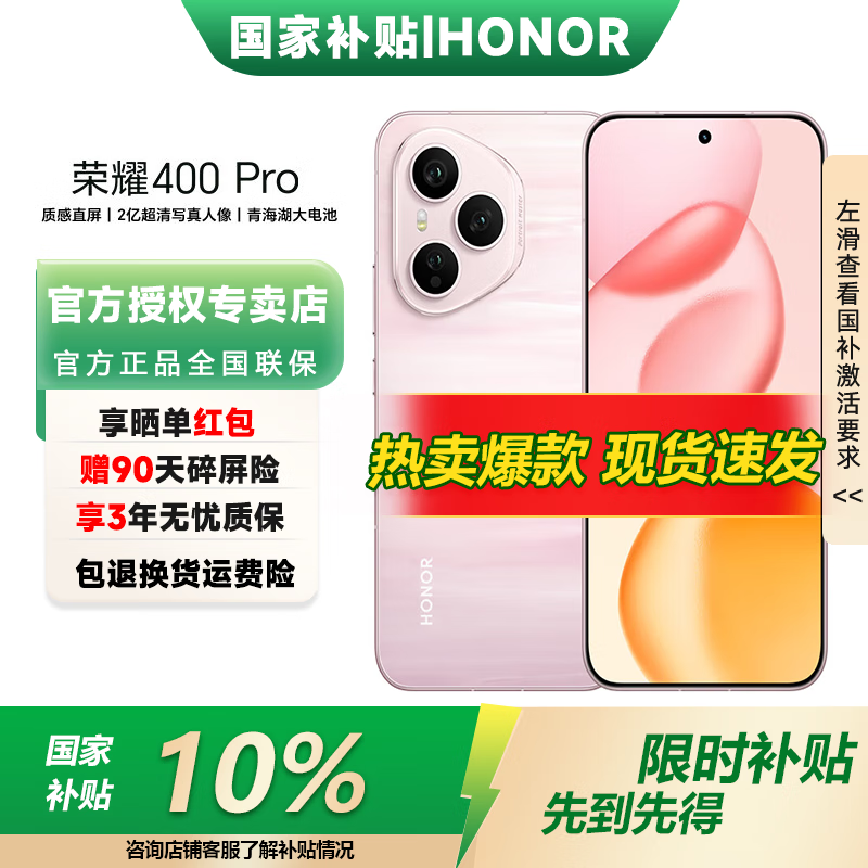 荣耀400 Pro/400【全店24期免息】AI 2亿超清写真人像7200mAh青海湖大电池绿洲护眼屏5GAI学生拍照手机 流沙粉 12GB+256GB【荣耀400】 0首付24期免息【赠2年店铺延保+90天碎屏保】